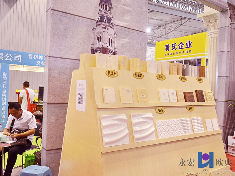 作为中国GRC协会会员单位、四川GRC协会会长单位我司很荣幸被要求出展。我司也不负建博会的厚望,先后陈列出了普通GRC、新型GRC、GRH、EPS、GRG、欧式、意式、法式、仿砂岩、仿洞石、仿木纹、仿花岗石、雕塑、等样品及小部分产品。